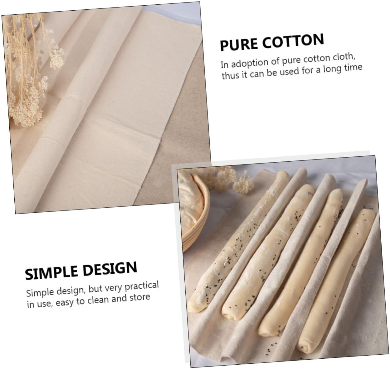 Made from high-quality cotton material, these baking couches are durable and reusable, making them an eco-friendly choice for your kitchen. The cloths are perfect for proofing bread dough, allowing it to rise evenly and retain its shape for that classic artisanal look.