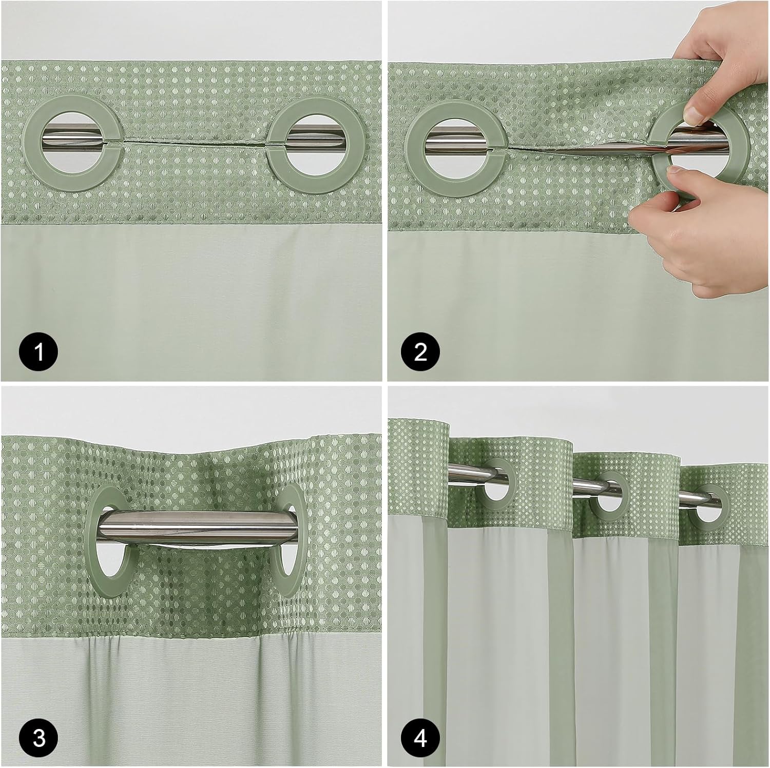 Designed in a classic 72” x 75” size, this hotel-style shower curtain set in a serene Sage Green color will instantly elevate the look of your bathroom. The waterproof material ensures water stays inside the shower, keeping your floors dry and preventing water damage.